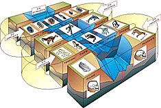 Realizzazione di illustrazioni per il libro "Scienze della terra". (Archimede). N. disegni: 91 (disegni e carte) Settore: Editoria scolastica. Redazione: Aqaba Commit.: Ariberto srl / Bruno Mondadori Editore Periodo: 1996 [ vedi anche: cartografia ] |